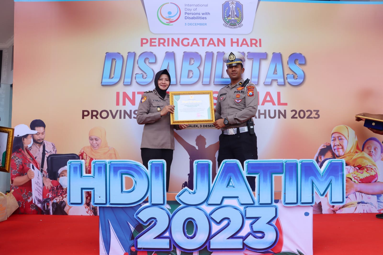 Penghargaan itu sendiri diserahkan oleh Sekda Provinsi Jawa Timur, Adhy Karyono A.KS., M.A.P. bersamaan dengan digelarnya peringatan Hari Disabilitas Internasional (HDI) Provinsi Jawa Timur yang dipusatkan di GOR Gajah Putih, Kabupaten Trenggalek. Minggu, (3/12).