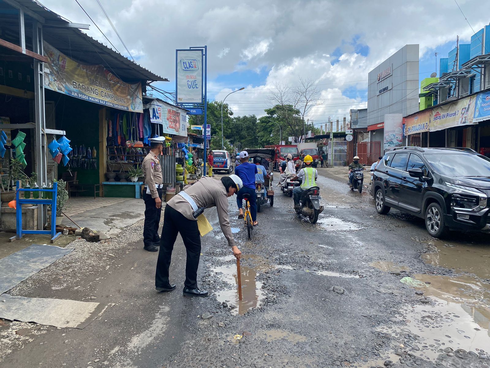 “Kita juga langsung mendata titik titik jalan yang mengalami kerusakan, yang membahayakan pengguna jalan dan berpotensi menjadi faktor penyebab terjadinya kecelakaan lalu lintas,” kata AKP Ida Ayu Made Ari Suastini.