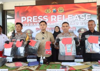BLITAR PB - Kepolisian Resor (Polres) Blitar menggelar konferensi pers hasil Operasi Sikat Semeru 2023 yang dilaksanakan selama 12 hari,...