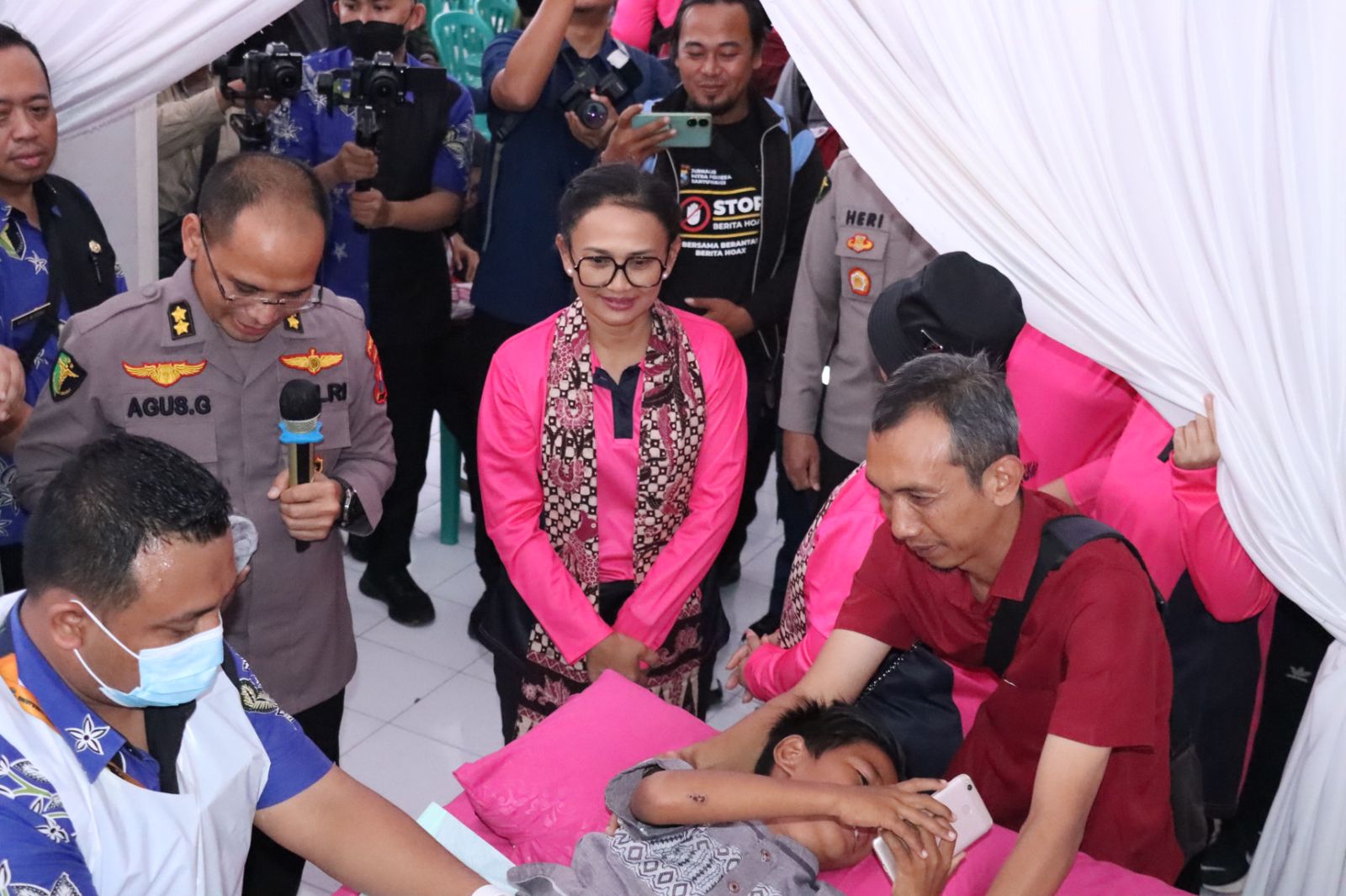 Kepala Bidang Kedokteran dan Kesehatan (Kabiddokkes) Polda Jatim, Kombes Pol dr. H. Erwinn Zainul Hakim, MARS., MH. Kes mengatakan pada kegiatan Bakti Kesehatan ( Baktikes ) Bhayangkari Peduli “Tour Of Kemala” di Banyuwangi tersebut juga digelar khitan masal.