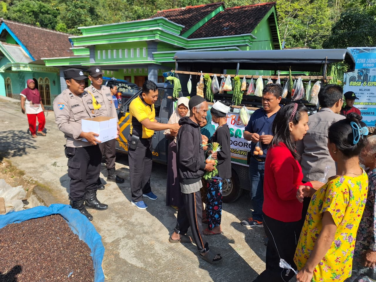 Bentuk Kepedulian Polisi Ngawi, Sayur dan Lauk dibagikan Gratis Kepada Warga Jogorogo