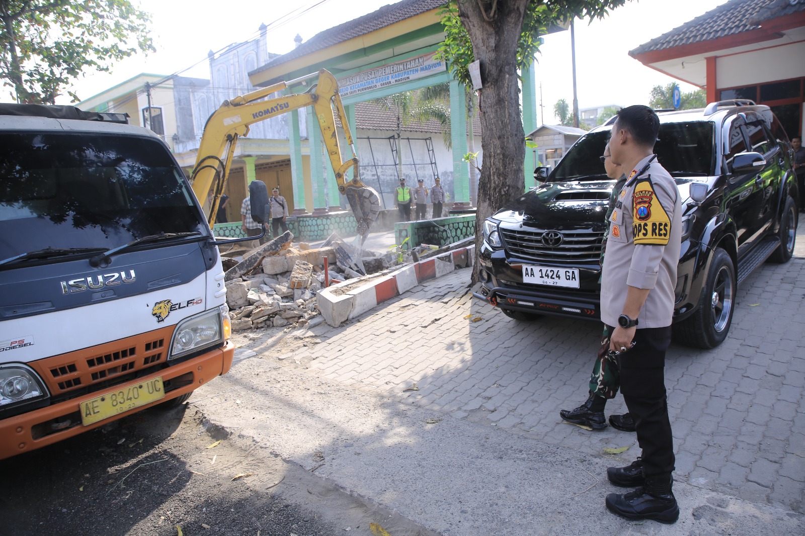 Dalam pengamanan pembongkaran tersebut melibatkan anggota Polres Madiun, unsur TNI, Brimob, Dishub, Satpol PP dan BPBD Kab. Madiun.