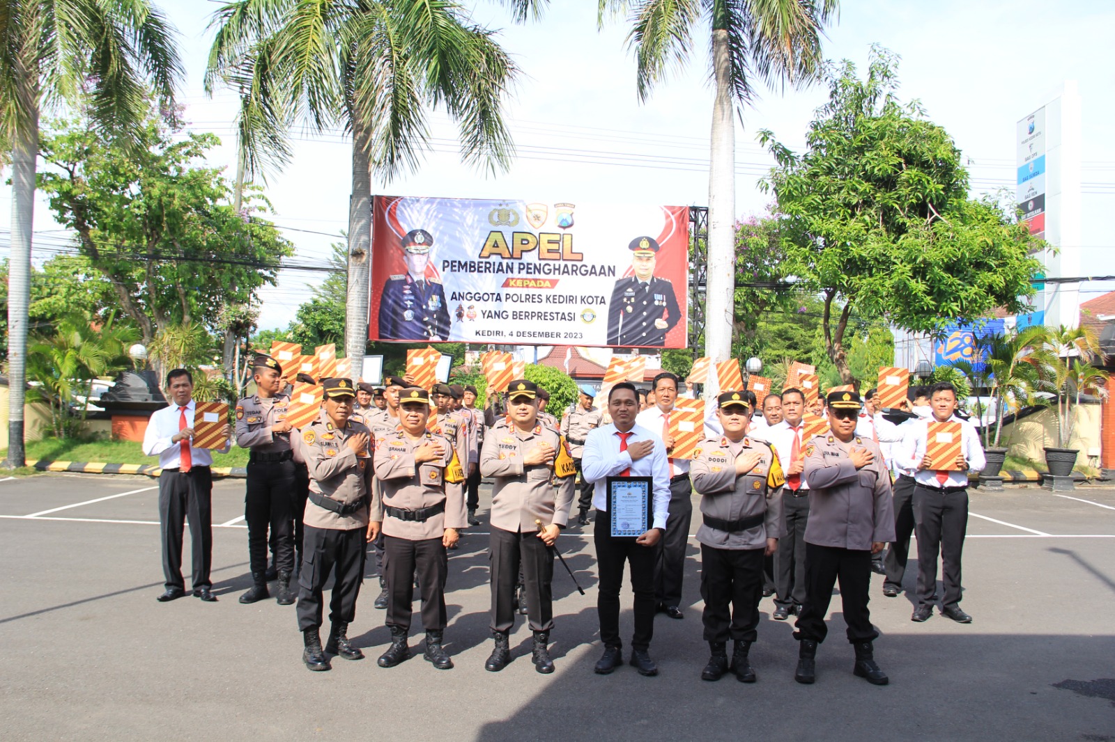 “Kita Harapkan penghargaan ini dapat menjadi pemicu bagi seluruh fungsi dan unit di Polres Kediri Kota untuk meningkatkan kinerjanya dalam memberikan pelayanan dan perlindungan kepada masyarakat”, ucap Kapolres saat menyampaikan pidatonya di acara apel pagi