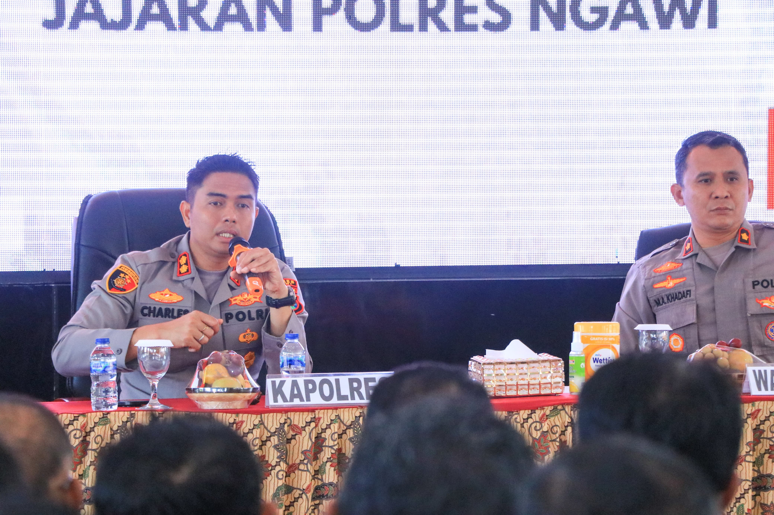 Ngawi, Pilarbangsa.co.id. Kapolres Ngawi AKBP Charles Pandapotan Tampubolon, S.I.K., S.H., M.H., memberikan pengarahan khusus kepada personel fungsi Bina Masyarakat (Binmas) dan 217 Bhabinkamtibmas jajaran Polres Ngawi, dalam kegiatan yang digelar di SMK PGRI I Ngawi