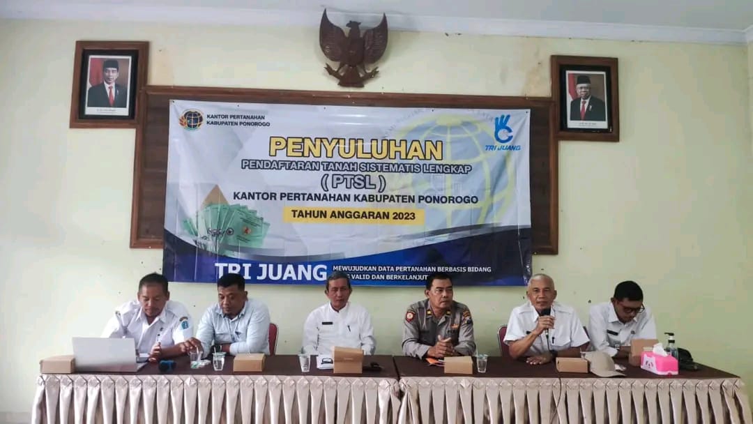 Ponorogo PB  –  Badan Pertanahan Nasional Kabupaten Ponorogo menggelar sosialisasi program pendaftaran tanah sistematis lengkap (PTSL) tahun anggaran 2023 di Desa Ngebel. Bertempat di lantai 2 kantor desa setempat, sosialisasi dilaksanakan, Rabu (10/05/2023).