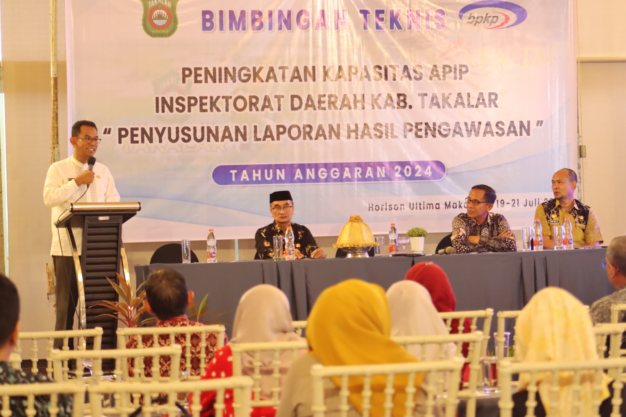 Dalam rangka Peningkatan Kapasitas Aparat Pengawasan Intern Pemerintah (APIP), Inspektorat Daerah Kab. Takalar telah melaksanakan Bimbingan Teknis Penyusunan Laporan Hasil Pengawasan TA. 2024, yang dibuka oleh Pj. Bupati Takalar Dr. Setiawan Aswad,.M.Dev,.Plg, di Hotel Horison Makassar, Jum’at 19 Juli 2024.
