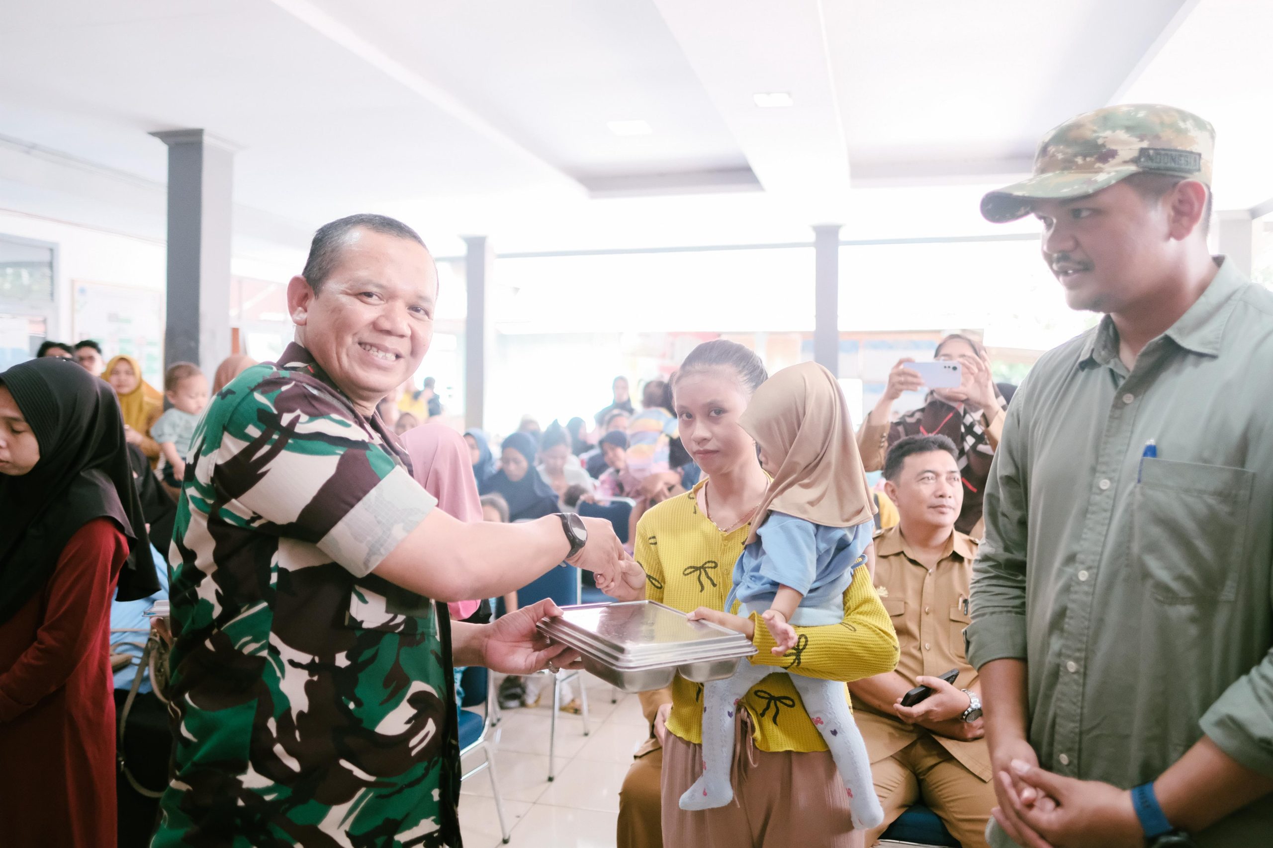 “Hari ini adalah hari penyaluran. Jadi kegiatan MBG ini bukan hanya menyasar anak-anak, tetapi juga ibu hamil dan ibu menyusui, sesuai dengan instruksi langsung dari Bapak Presiden. Mungkin masih ada ibu-ibu yang bertanya-tanya apa gunanya program MBG ini. Bahkan di dalamnya disiapkan makanan khusus. Kalau anak-anak dari kecil sudah kurang gizi, tentu perkembangannya akan terganggu. Maka dari itu, melalui program seperti ini, kita harap angka stunting bisa benar-benar menurun. Insya Allah, anak-anak kita ke depan akan menjadi pemimpin-pemimpin masa depan”.
