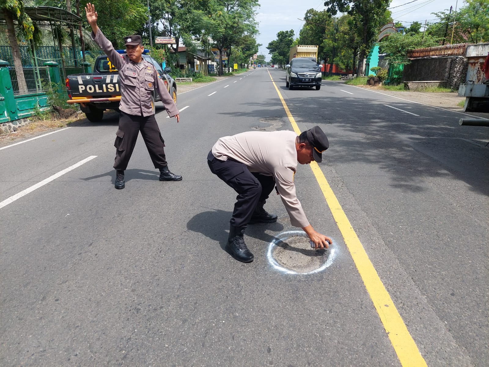 “Oleh karena itu, kami mengambil langkah proaktif untuk menandai lokasi-lokasi jalan berlubang dengan cat warna putih agar pengendara dapat lebih waspada dan mengambil tindakan pencegahan,” ujar AKP Achmat.
