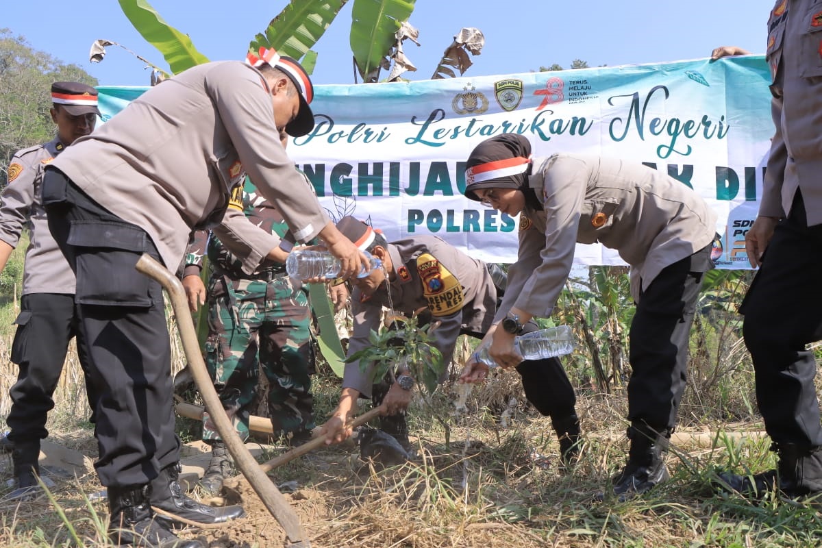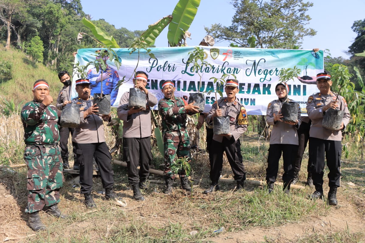 MADIUN PB – Kepolisian Resor Madiun menggalakkan kegiatan penanaman pohon di Desa Kepel Kecamatan Kare Kabupaten Madiun, Jum’at (18/8).