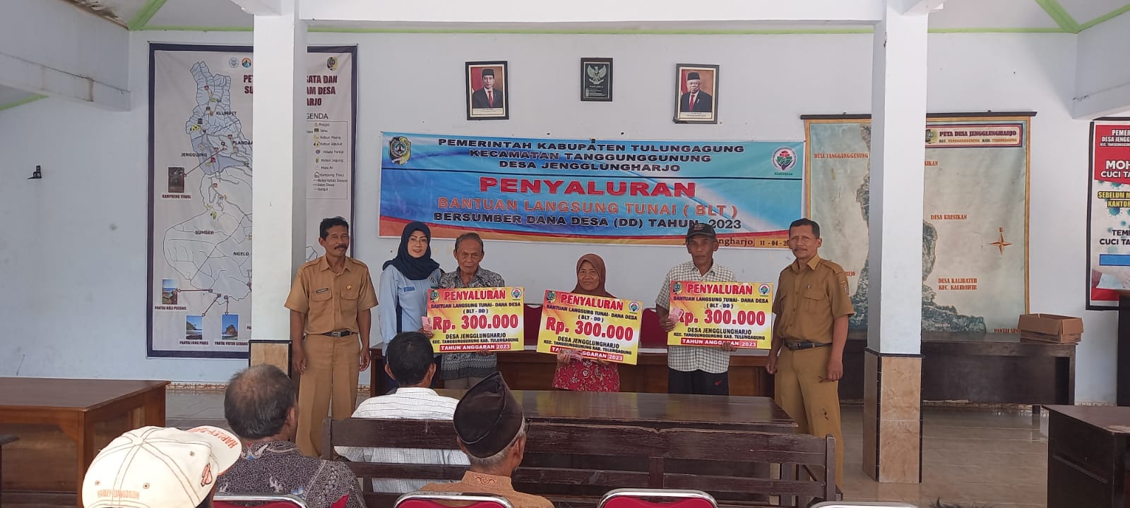 TULUNGAGUNG PB – Pemerintah desa Jengglungharjo, kecamatan Tanggunggunung, kabupaten Tulungagung, salurkan BLT DD (bantuan langsung tunai dana desa) tahun 2023 pada 34 KPM (keluarga penerima manfaat), di balai desa setempat.