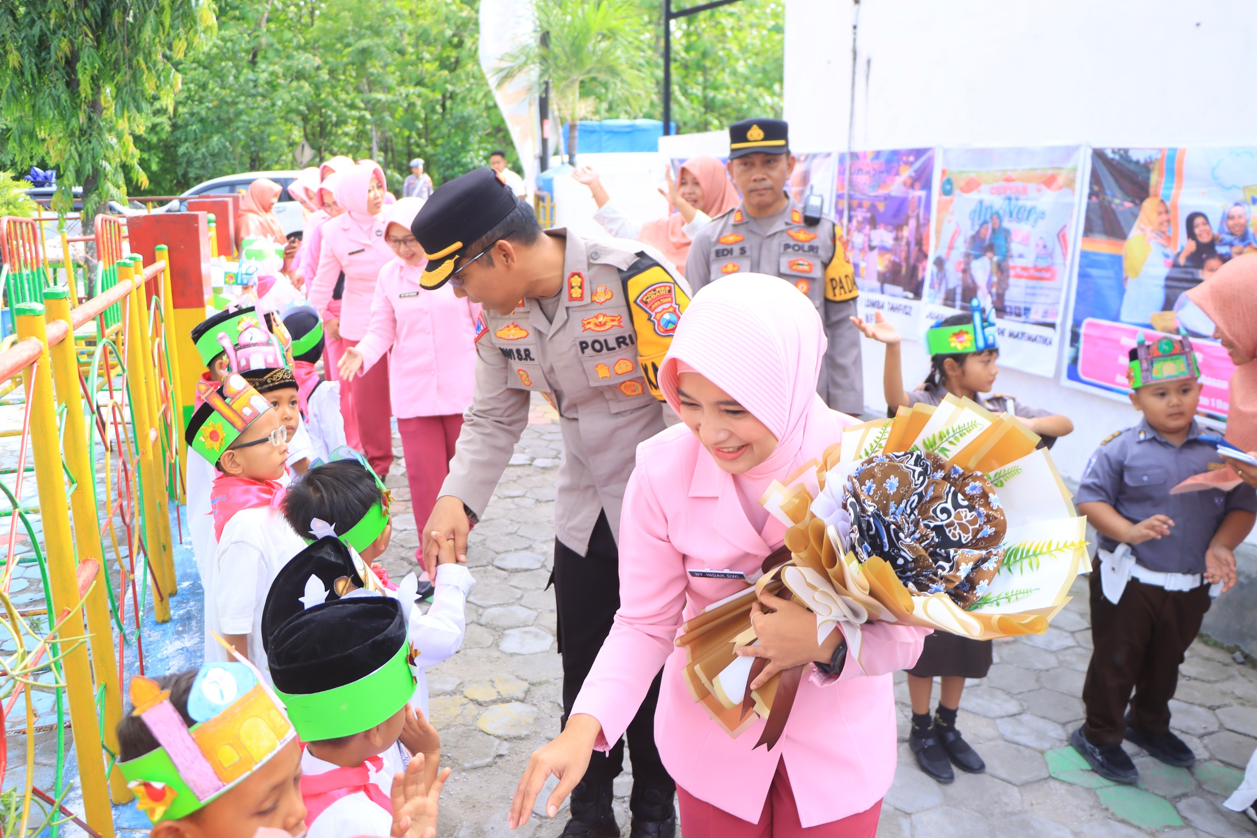 NGAWI, Pilarbangsa.co.id. Dalam rangka mendukung program pemerintah di sektor pendidikan, Kapolres Ngawi AKBP Dwi Sumrahadi Rakhmanto, S.H., S.I.K., M.H., bersama Ketua Pengurus Yayasan Kemala Bhayangkari (YKB) Cabang Ngawi Ny. Indah Dwi mengunjungi TK Kemala Bhayangkari 55 Padas.