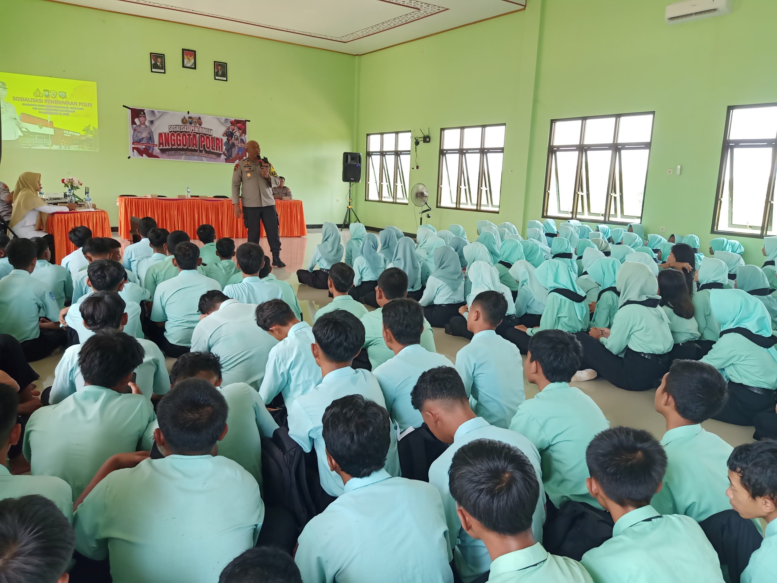 Kali ini sosialisasi dilaksanakan di SMKN 1 Sine, dipimpin oleh Kabag SDM (Sumber Daya Manusia) Polres Ngawi Kompol Musa Bakhtiar A., S.Sos., M.M., didampingi anggota SDM.