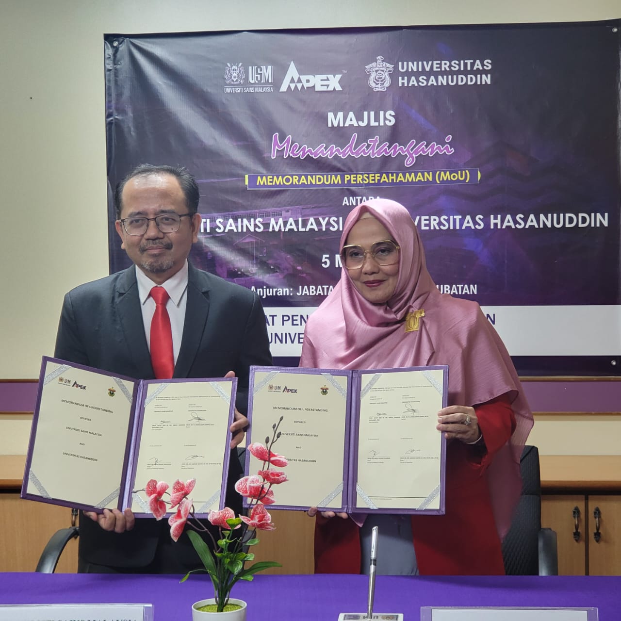 Fakultas Kedokteran Universitas Hasanuddin (FK Unhas dengan Pusat Pengajian Sains Perubatan Universiti Sains Malaysia (PPSP USM) menjalin kerjasama dalam bidang pendidikan dan penelitian. Hal ini ditandai dengan penandatanganan Memorandum of Aggreement oleh Dekan FK Unhas Prof. Dr. dr. Haerani Rasyid, M.Kes, Sp.PD-KGH, Sp.GK, FINASIM dengan Dekan PPSP USM Prof. Dr. Abdul Razak Sulaiman.