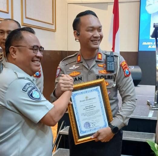 Polres Nganjuk melalui Satuan Lalu Lintas berhasil meraih penghargaan sebagai juara 1 dalam upaya menekan angka kecelakaan tingkat Polda Jawa Timur. Reward tersebut diserahkan langsung oleh Kepala Jasa Raharja Provinsi Jawa Timur, Tamrin Silalahi, ST., M.Si., AAAIK, kepada Kasatlantas Polres Nganjuk saat acara pembukaan Latihan Peningkatan Kemampuan Penyidik Laka Lantas bersama Polres jajaran Polda Jatim TA 2025 di Hotel Surabaya Suites, Jl. Pemuda No. 33–37, Surabaya, Rabu (10/9/2025).