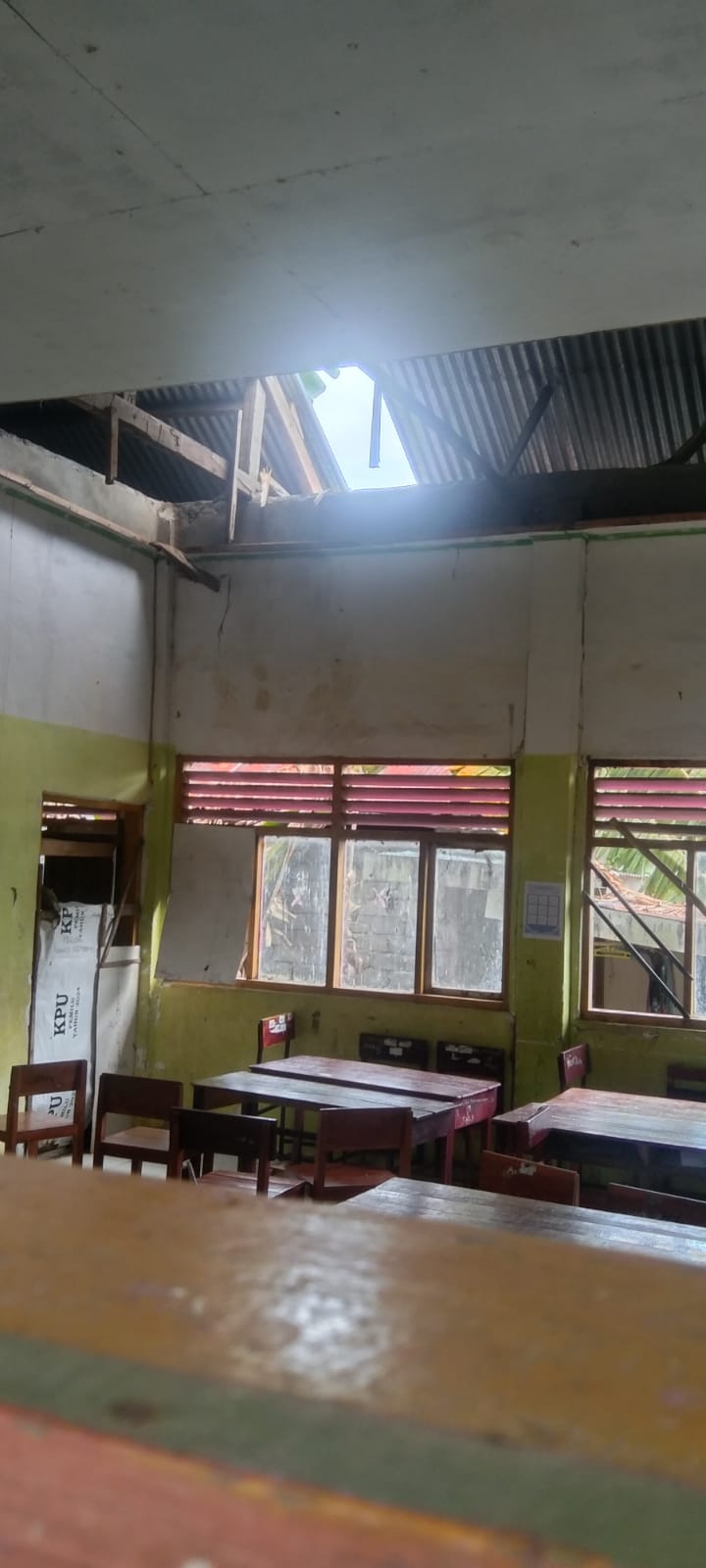 Lanjut Hamzah menambahkan,1 gedung ruang kelas belajar (RKB) yang sudah rusak parah gedungnya menghadap kesebelah utara sekolah tersebut selama tahun 2026 sudah tidak lagi ditempati belajar pada saat jam pelajaran.