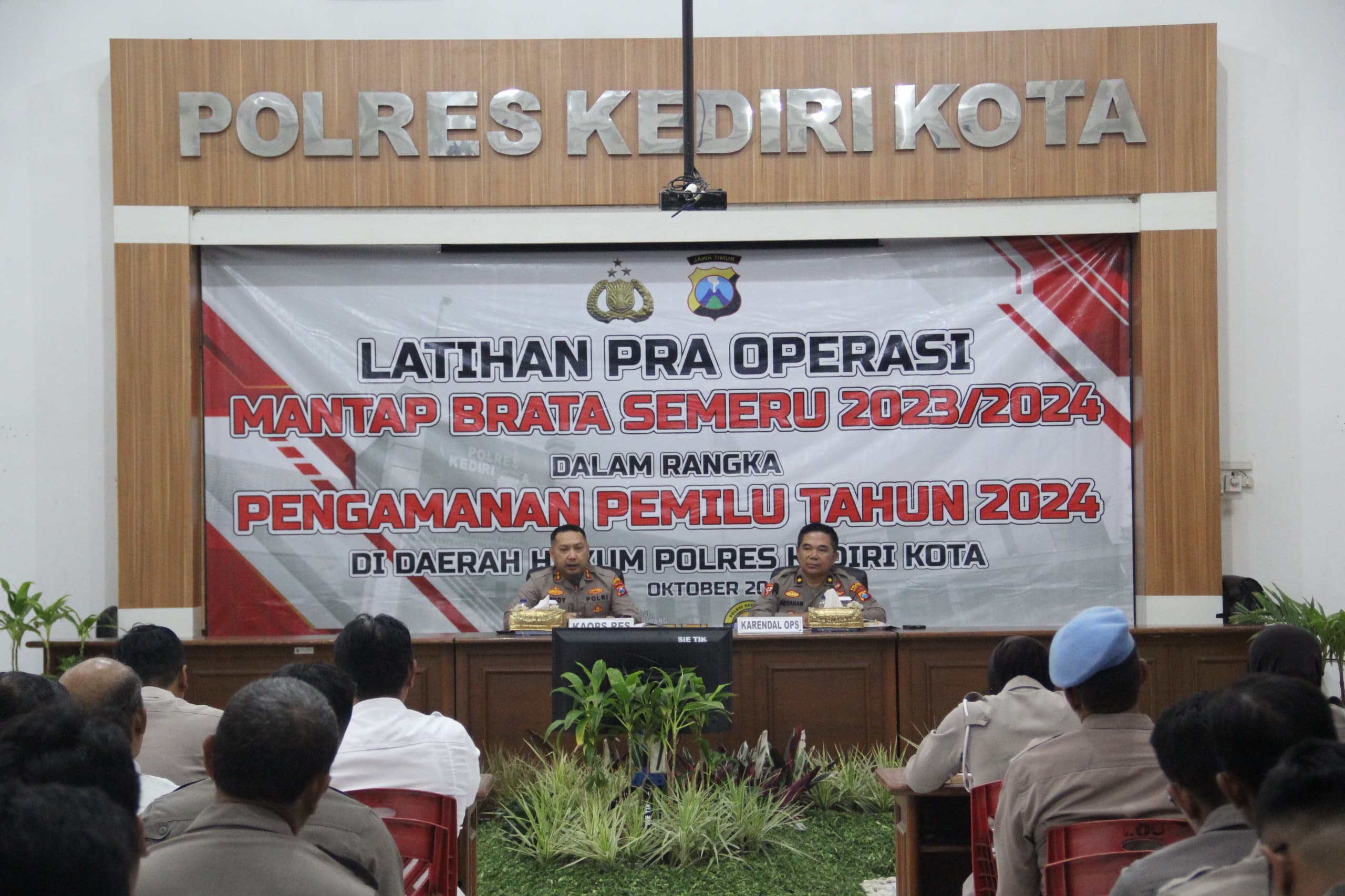 Polres Kediri Kota menggelar latihan Pra Operasi (Latpraops) Mantap Brata Semeru di Rupatama Mapolres Kediri Kota, Senin, 16 Oktober 2023.