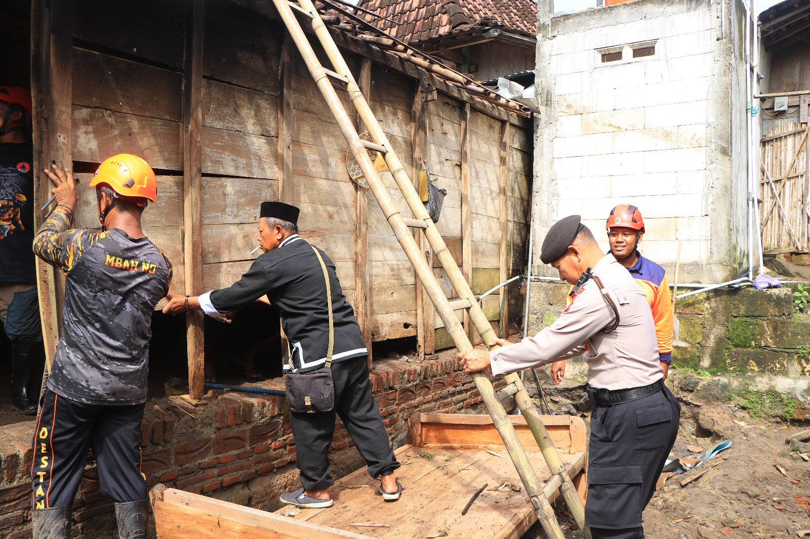 “Matur suwun pak polisi, sudah dibantu bersih-bersih. Alhamdulillah,” ujar Misinah (57), salah satu korban banjir yang rumahnya dibersihkan oleh aparat Kepolisian.
