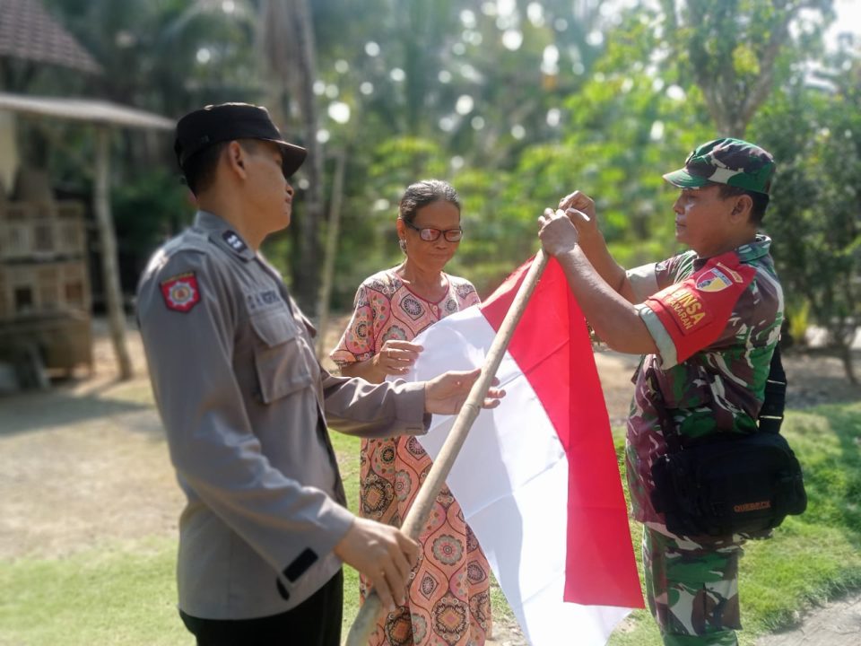 TRENGGALEK PB – Jajaran Kepolisian Resor Trenggalek bersama TNI dan unsur tiga pilar turun ke desa-desa membagikan bendera merah putih kepada warga. Bukan itu saja, petugas gabungan ini bahkan membantu masyarakat memasang bendera di depan rumah masing-masing. Rabu, (2/8).