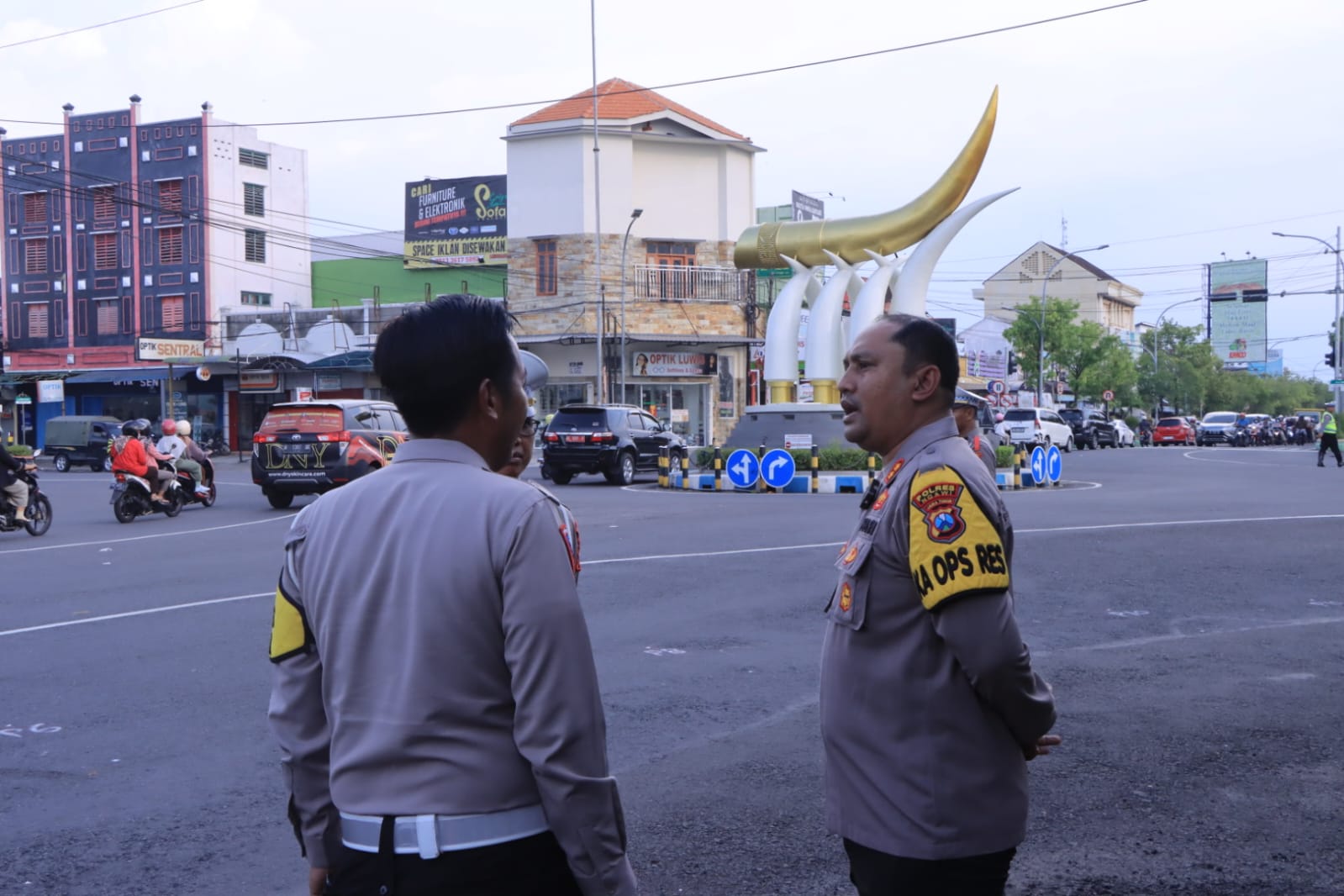 “Bisa dilihat di tugu Kartonyono ini, arus lalu lintas yang melintas dari arah Solo ke Bojonegoro/Surabaya serta ke pusat kota dan Madiun, juga sebaliknya ramai, namun tetap lancar. Tidak ada kemacetan,” tutur AKBP Dwiasi didampingi Kasat Lantas Iptu Adiatma Fahmi