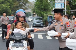 “Kami memberikan ratusan takjil kepada masyarakat yang melintas didepan Mapolres Blitar Kota,” ujar Kapolres Blitar Kota AKBP Argowiyono.
