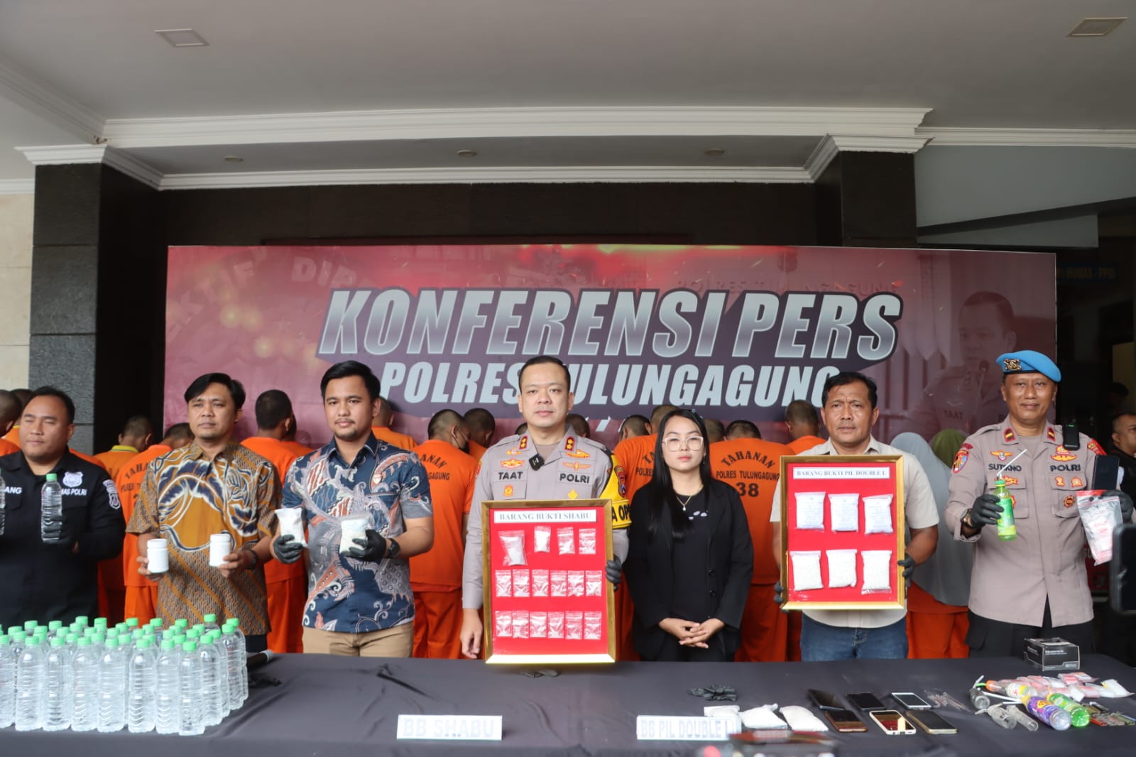 Hal tersebut disampaikan oleh Kapolres Tulungagung AKBP Muhammad Taat Resdi dalam konferensi pers yang didampingi Kasatnarkoba Polres Tulungagung dan PJU Polres bertempat dilobi Polres, Jumat (21/03/2025).