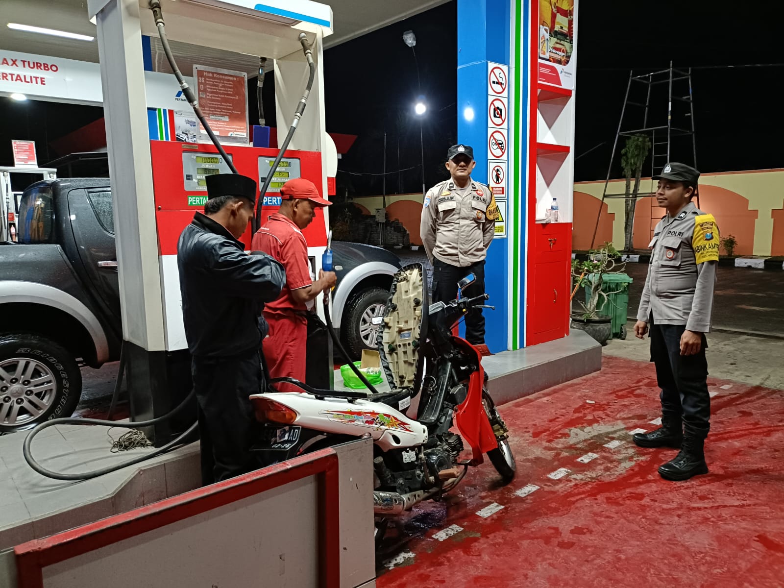 Seperti yang dilakukan oleh Polsek Widodaren Polres Ngawi Polda Jatim yang melaksanakan patroli dialogis menyasar pada obyek vital diantaranya area SPBU dan tempat pemukiman, pada Jumat (5/1/2024) malam