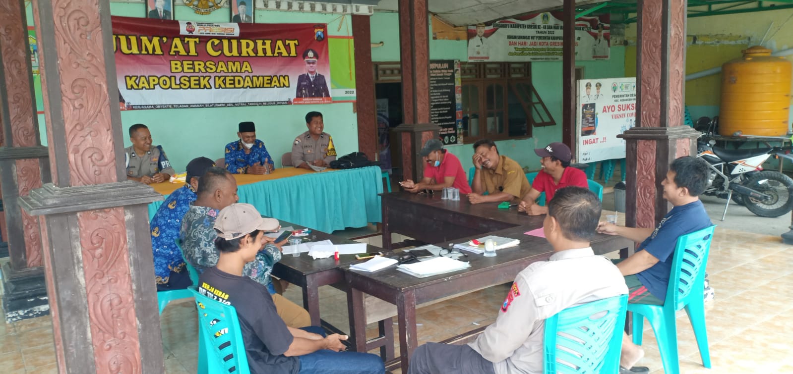 GRESIK – Polsek Kedamean menerima sejumlah keluhan warga saat kegiatan Jum’at Curhat. Kali ini dari Masyarakat Desa Tulung Kecamatan Kedamean. Warga mengeluhkan beberapa permasalahan yang harus ditindak Polisi.