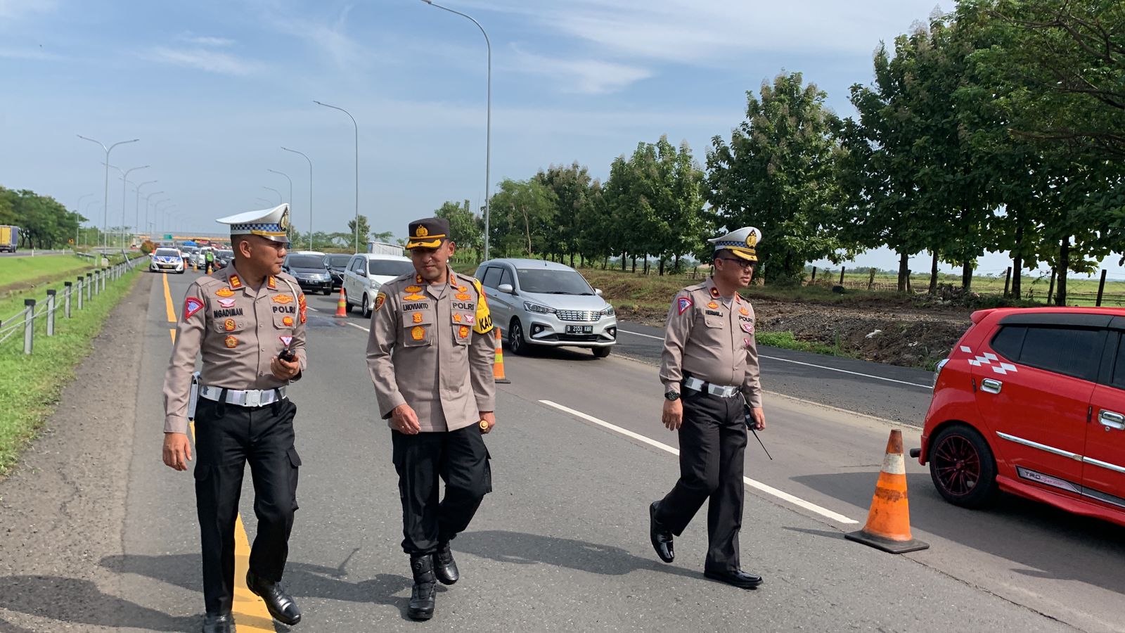Kota Bandung PB – Kapolres Majalengka Polda Jabar AKBP Indra Novianto, S.I.K. didampingi Kasat Lantas Polres Majalengka AKP Ngadiman S.Kom memantau arus lalu lintas di KM 152 – KM 166 Tol Cipali, Minggu (16/4/2023).