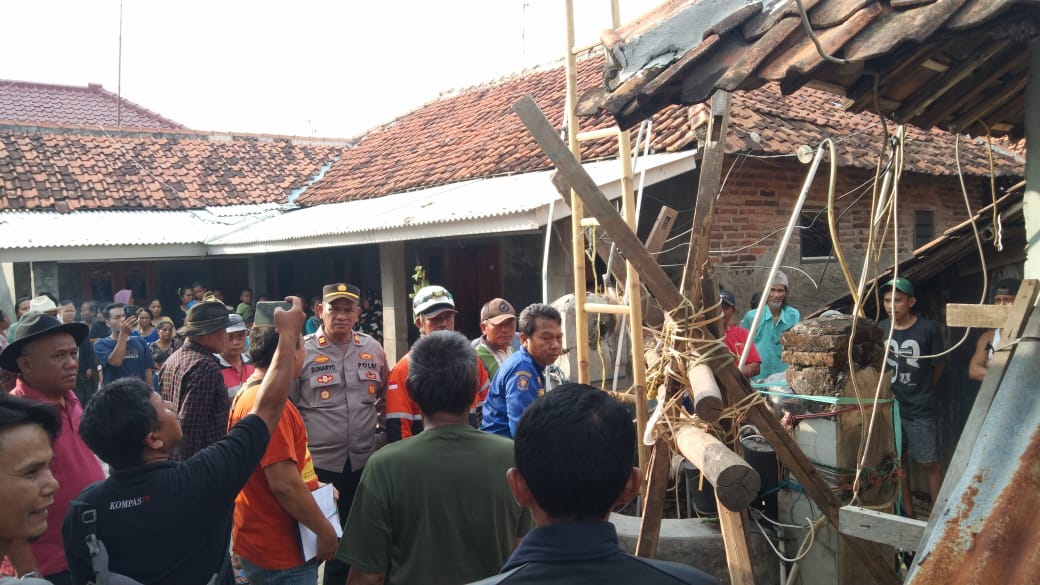 Kapolsek Lelea Polres Indramayu Polda Jabar , Iptu Sunaryo, memimpin evakuasi korban yang terjebak di dalam sumur sepanjang 12 meter di Desa Tugu.