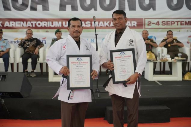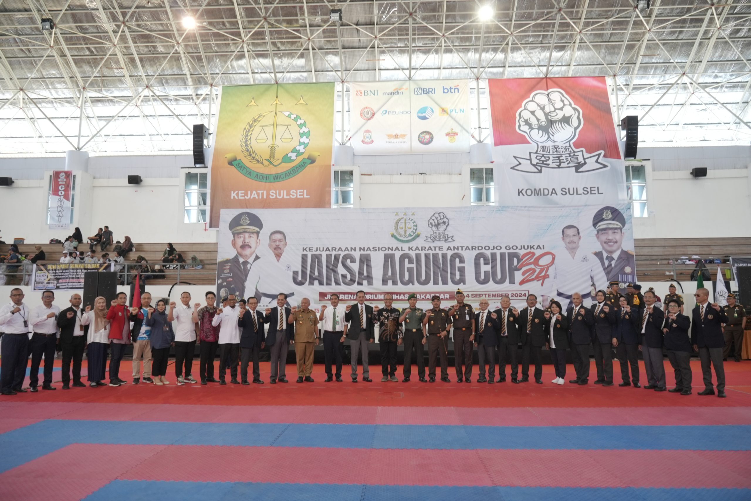 Makassar, Pilarbangsa.co.id. Kepala Kejaksaan Tinggi Sulawesi Selatan Agus Salim yang sekaligus merupakan Ketua Umum Karatedo Gojukai Komda Sulsel membuka Kejuaraan Nasional Karate Antardojo Gojukai yang akan memperebutkan Piala Bergilir “JAKSA AGUNG CUP,” di Arenatorium Olah Raga (GOR) Universitas Hasanuddin, Senin (2/9/2024).