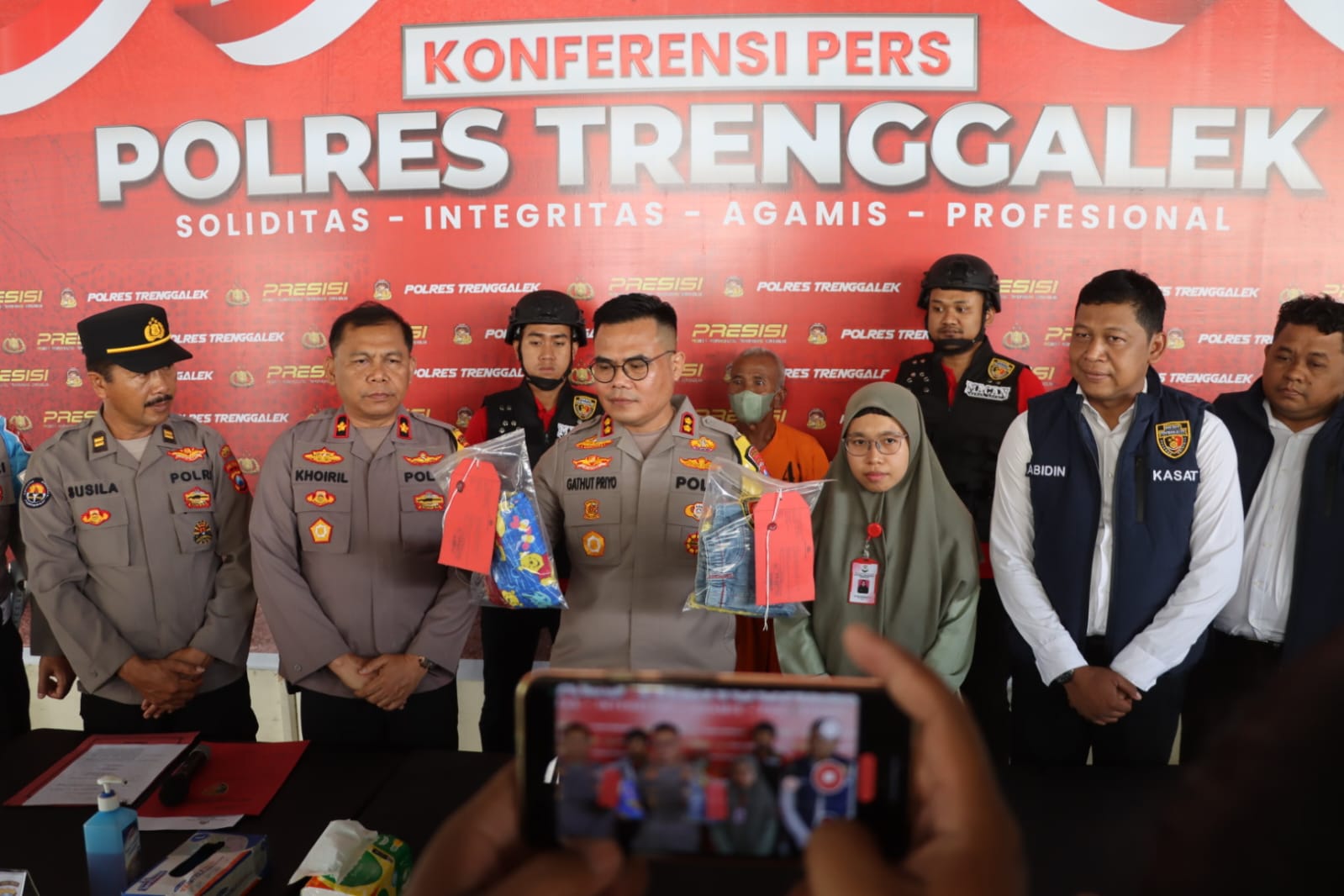 Kapolres Trenggalek AKBP Gathut Bowo Supriyono, S.H., S.I.K., M.Si. dalam konferensi pers yang digelar di Mapolres siang ini mengungkapkan, tersangka SYN merupakan warga Durenan yang memang sehari-hari kerap berada di tanah lapang (TKP) tak jauh dari sekolah para korban. Senin, (13/11).