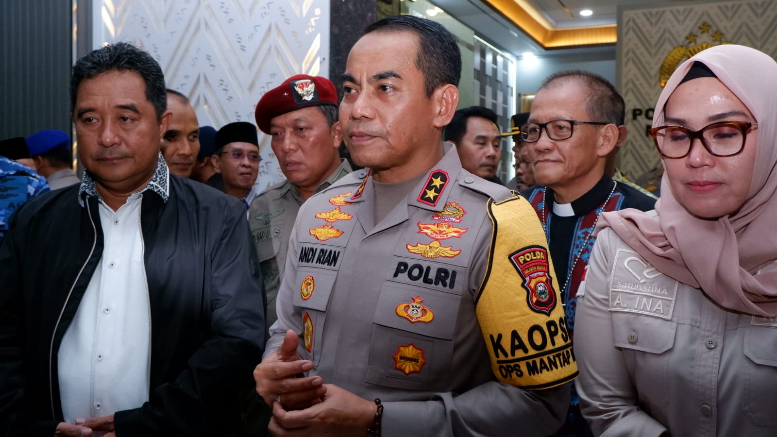 Kapolda Sulsel Irjen Pol Andi Rian R.Djajadi., S.I.K., MH, bersama Penjabat (Pj) Gubernur Sulsel Bakhtiar Baharuddin, Kasdam, Ketua DPRD Sulsel A. Ina Kartika Sari., S.H.,M.Si dan dan Walikota Makassar Ir. Ramadhan Dhany Pomanto Melaksanakan Pemantauan Pos Pengamanan, Pos Pelayanan dan Monitoring Situasi kamtibmas Perayaan Natal Tahun 2023 di Makassar, Minggu, (24/12).
