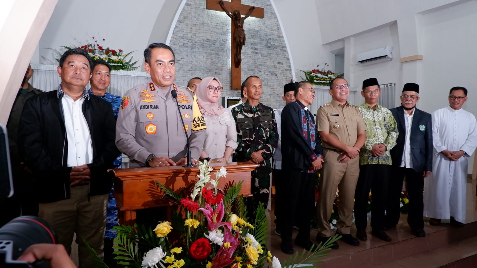 Dalam kesempatan itu, Andi Riyan menyampaikan sambutan kepada jemaat gereja agar tidak usah khawatir dengan keamanan ibadah natal 2023, Kapolda juga juga memberikan sejumlah bingkisan ke sejumlah pengaman gereja.