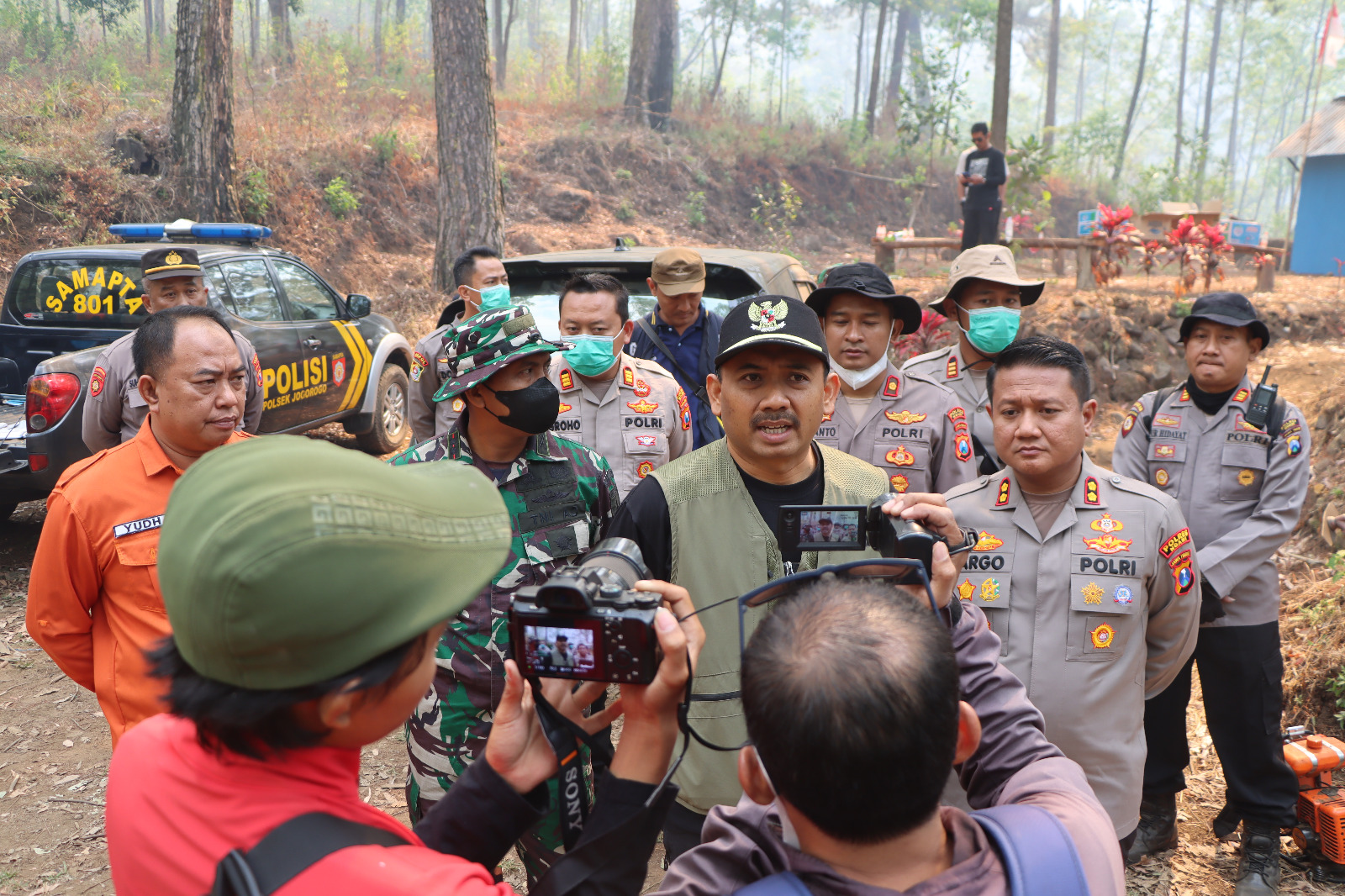 Kapolsek Jogorogo AKP Nut Hidayat, S.H., yang turut mendampingi pemadaman api di lereng hutan gunung Lawu mengatakan bahwa, “Kali ini Polres Ngawi bersama TNI, Pemkab Ngawi dibantu Relawan saling berjibaku membuat ilaran atau penyekat api, agar api tidak semakin meluas.”