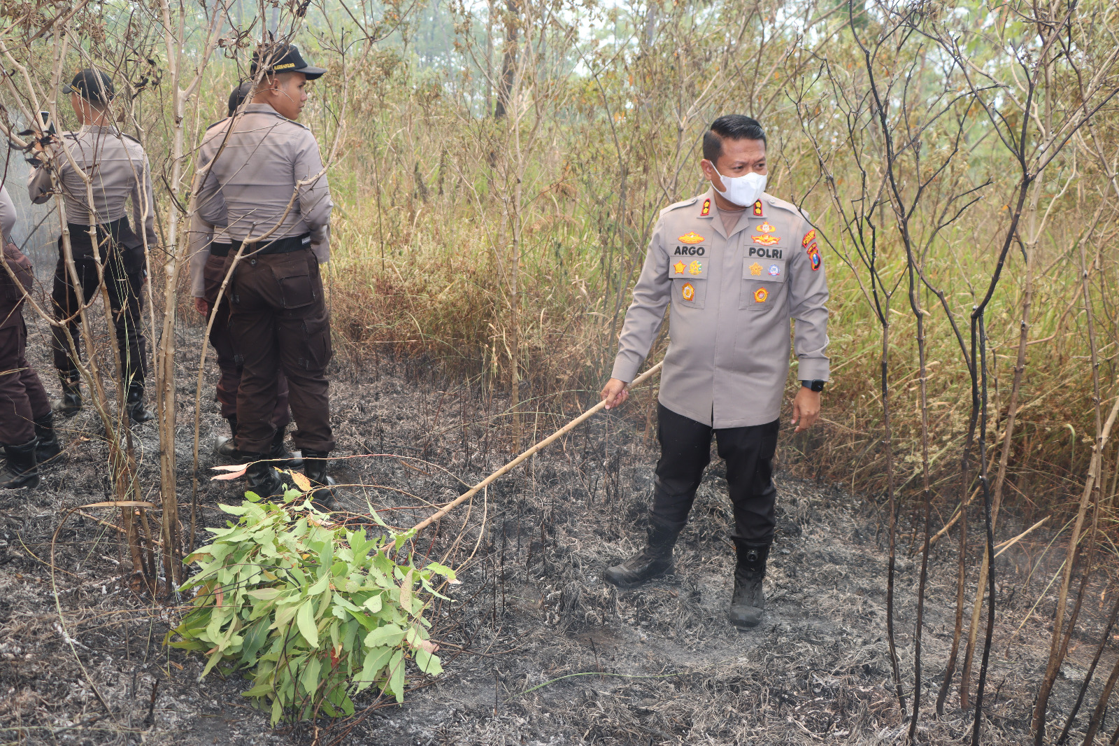 Kali ini, Kapolres Ngawi AKBP Argowiyono, S.H., S.I.K., M.Si bersama Bupati H Ony Anwar dan Dandim 0805 Ngawi Letkol Arm Didik Kurniawan S.I.P terjun langsung bersama relawan saling membantu memadamkan api dengan membuat ilaran/penyekat api, pada Minggu (1/10/2023)