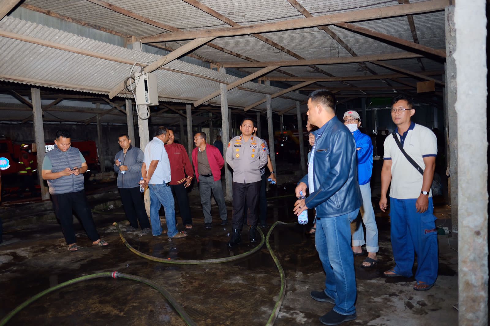 AKBP Danang memantau langsung proses pemadaman api di TKP Gudang eggtray.