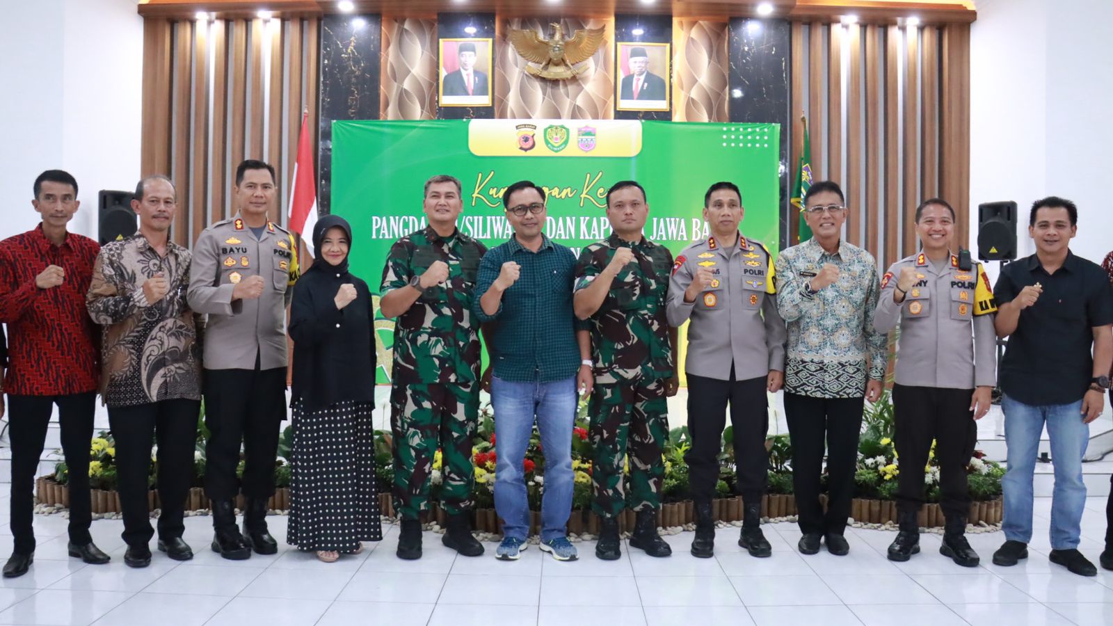 KOTA BANDUNG PB – Kapolda Jabar Irjen Pol Dr. Akhmad Wiyagus, S.I.K., M.Si., M.M., bersama Panglima Kodam III/Siliwangi Mayjen TNI Kunto Arief Wibowo, S.I.P., melaksanakan kunjungan kerja ke wilayah hukum Polres Ciamis Polda Jabar. Kunjungan itu dilaksanakan ke Pendopo Kabupaten Ciamis, Jawa Barat, Sabtu (22/7/2023).