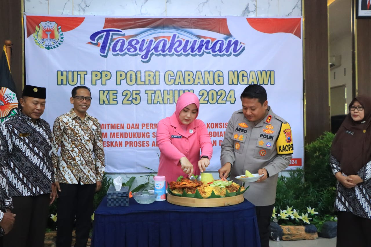 Kapolres Ngawi AKBP Argowiyono, S.H., S.I K., M.Si., bersama Ketua Bhayangkari Cabang Ngawi Ny. Marina Argo, menghadiri Tasyakuran HUT PP Polri Cabang Ngawi ke 25 tahun 2024 pada Sabtu, (13/7/2024)