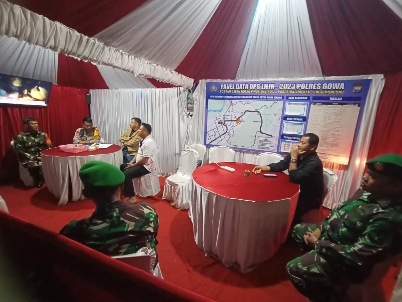 Kapolres Gowa AKBP R.T.S Simanjuntak, S.H., S.I.K., M.M., M.I.K., didampangi beberapa PJU Polres Gowa, melakukan pengecekan di Pos Pengamanan Operasi Lilin-2023 tepatnya di kawasan hutan Pinus Malino Kecamatan Tinggimoncong Kabupaten Gowa.