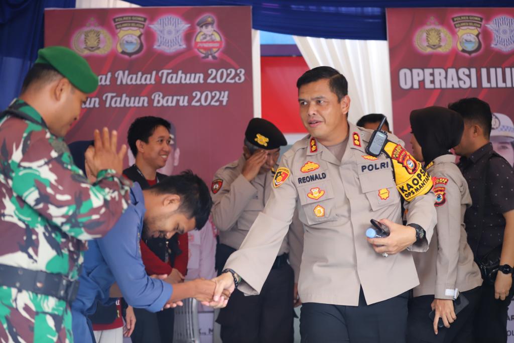 Kapolres Gowa, AKBP R.T.S Simanjuntak, S.H., S.I.K., M.M., M.I.K., beserta jajaran Pejabat Utama (PJU), melaksanakan kegiatan pengecekan Pos Pengamanan Operasi Lilin-2023, Minggu (24/12/2023).