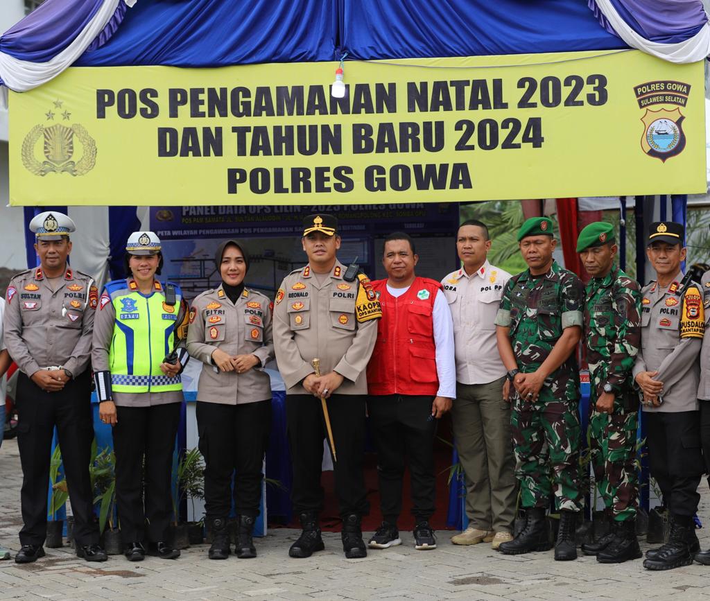 Kapolres Gowa, AKBP R.T.S Simanjuntak, S.H., S.I.K., M.M., M.I.K., beserta jajaran Pejabat Utama (PJU), melaksanakan kegiatan pengecekan Pos Pengamanan Operasi Lilin-2023, Minggu (24/12/2023).