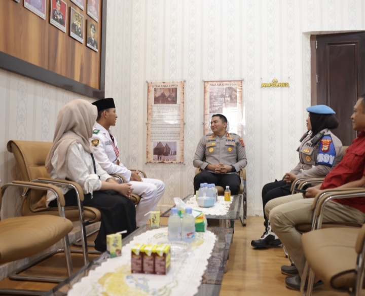 Gowa, Pilarbangsa.co.id Kapolres Gowa, AKBP Muhammad Aldy Sulaiman, S.I.K., M.Si., menerima kedatangan Nadhif, putra daerah Kabupaten Gowa yang baru saja menunaikan tugas mulianya sebagai Pasukan Pengibar Bendera Pusaka (Paskibraka) Nasional tahun 2025 di Istana Merdeka, Jakarta, Sabtu (23/8/2025).