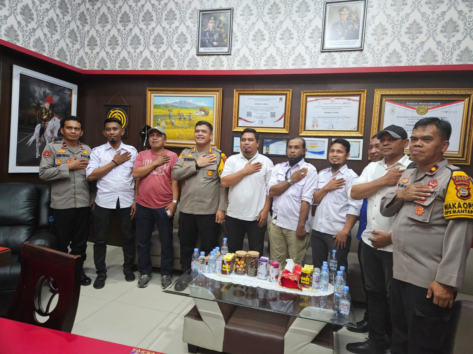 Kapolres Gowa, AKBP R.T.S Simanjuntak, S.H., S.I.K., M.M., M.I.K., dan Pejabat Utama (PJU) Polres Gowa menerima kunjungan silaturahmi dari Persatuan Wartawan Indonesia (PWI) Kabupaten Gowa di ruang kerja Kapolres, Rabu (03/01/2024) Siang.