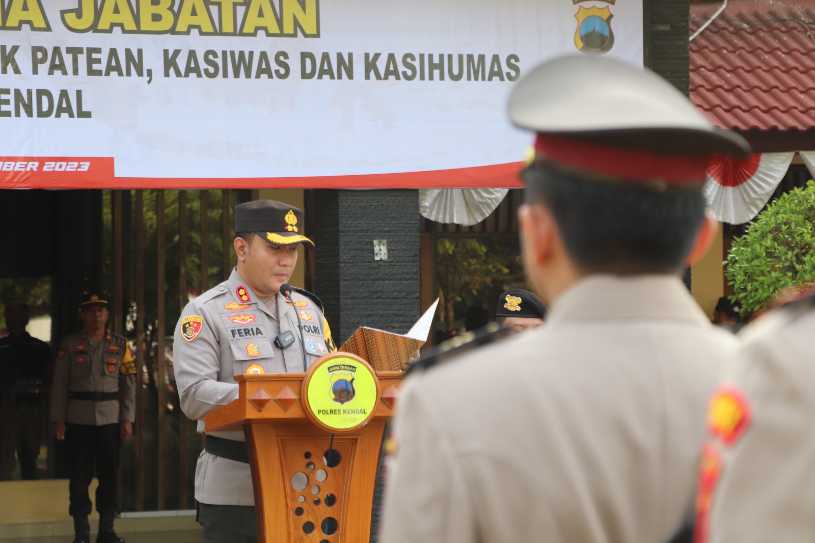 Kapolres Kendal AKBP Feria Kurniawan SIK manyampaikan mutasi jabatan merupakan proses alamiah dalam rangka meningkatkan kinerja, promosi dalam sistem pembinaan karier.