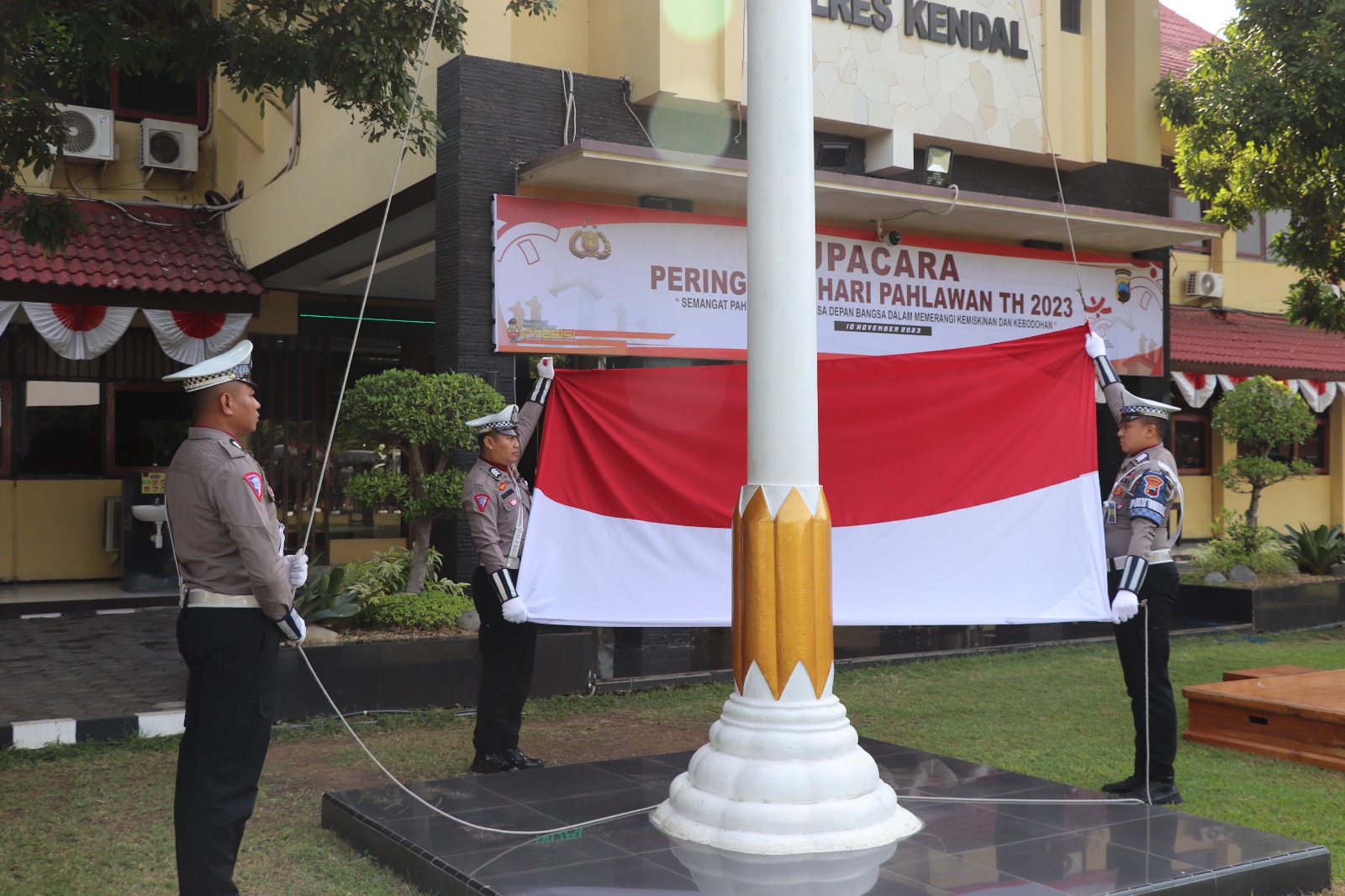 Memperingati hari Pahlawan ke – 78 tahun 2023 Polres Kendal melaksanakan upacara peringatan Hari Pahlawan yang dipimpin langsung oleh Kapolres Kendal AKBP Feria Kurniawan, S.I.K. bertempat di lapangan Apel Mapolres Kendal, Jumat (10/11/2023).