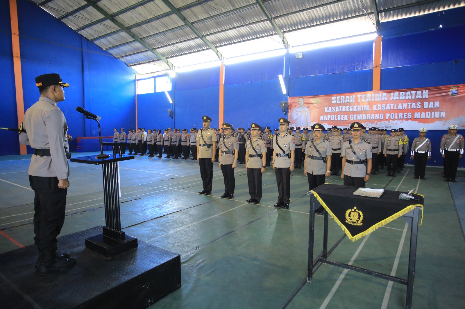 Polres Madiun menggelar serah terima jabatan (Sertijab) yang dihadiri oleh jajaran pimpinan dan personel Polres Madiun. Sertijab ini dipimpin langsung oleh Kapolres Madiun, AKBP Anton Prasetyo, S.H., S.I.K., M.Si., yang berlangsung dengan khidmat dan penuh keharuan, Jumat (20/10/2023)