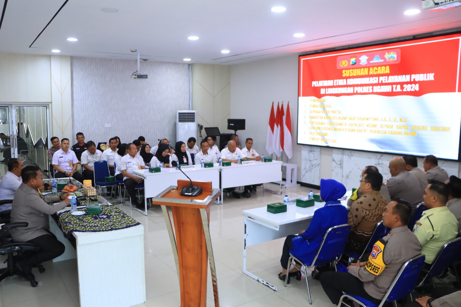 Polres Ngawi Polda Jawa Timur menggelar pelatihan etika pelayanan publik di lingkungan Polres Ngawi T.A 2024, bertempat di ruang Guyup Polres Ngawi, pada Senin (27/5/2024)