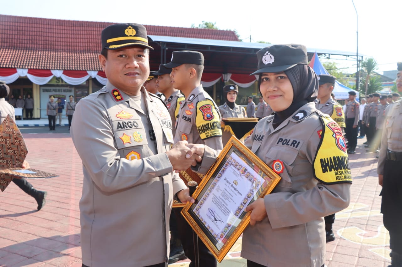 Dalam rangka apresiasi kinerja anggota, Kepala Kepolisian Resor Ngawi AKBP Argowiyono, S.H., S.I.K., M.Si memberikan penghargaan kepada beberapa anggota.