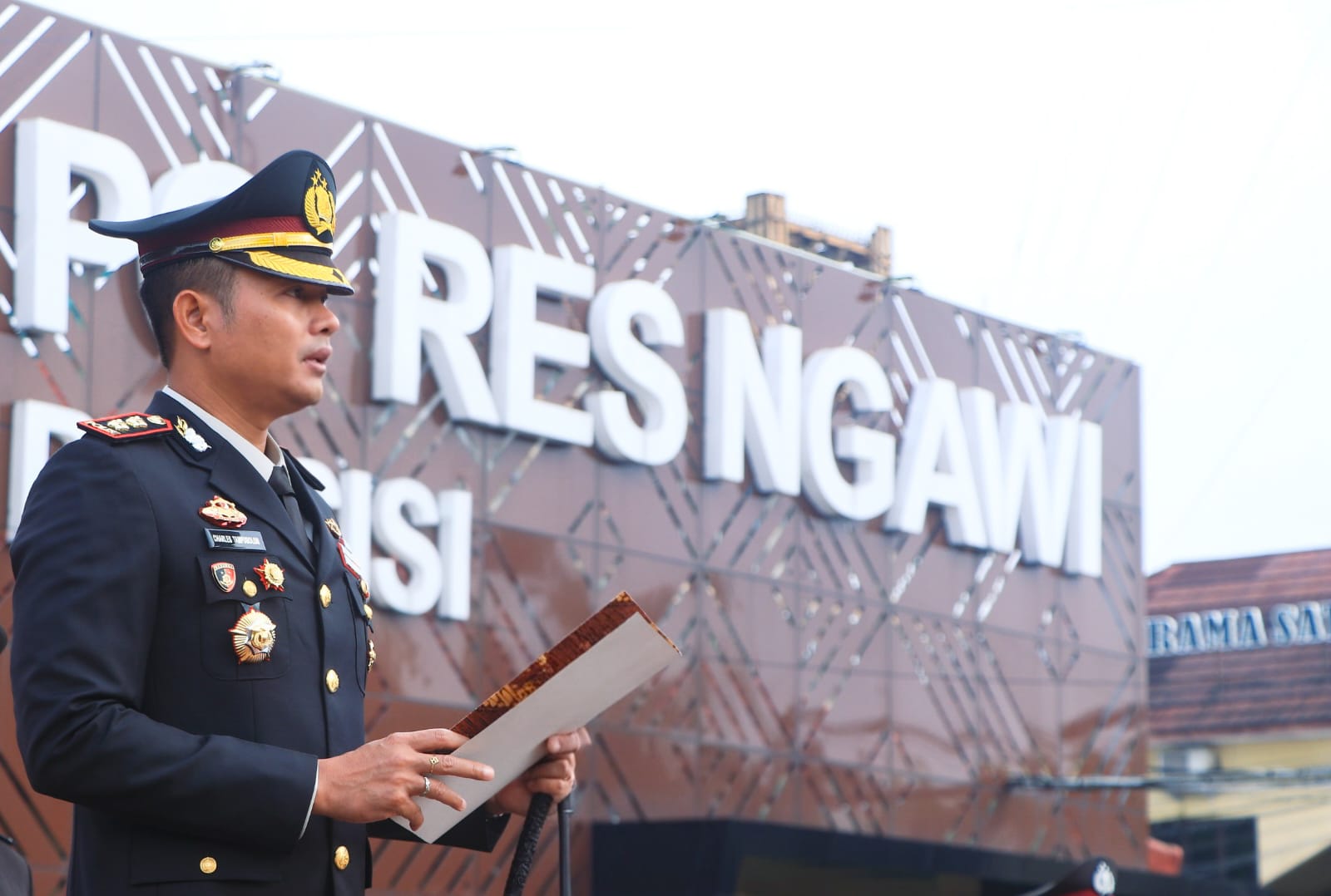 Kapolres Ngawi AKBP Charles Pandapotan Tampubolon, S.I.K., S.H., M.H., menegaskan bahwa momen ini harus dijadikan landasan memperkuat rasa nasionalisme dan menjaga keutuhan bangsa.