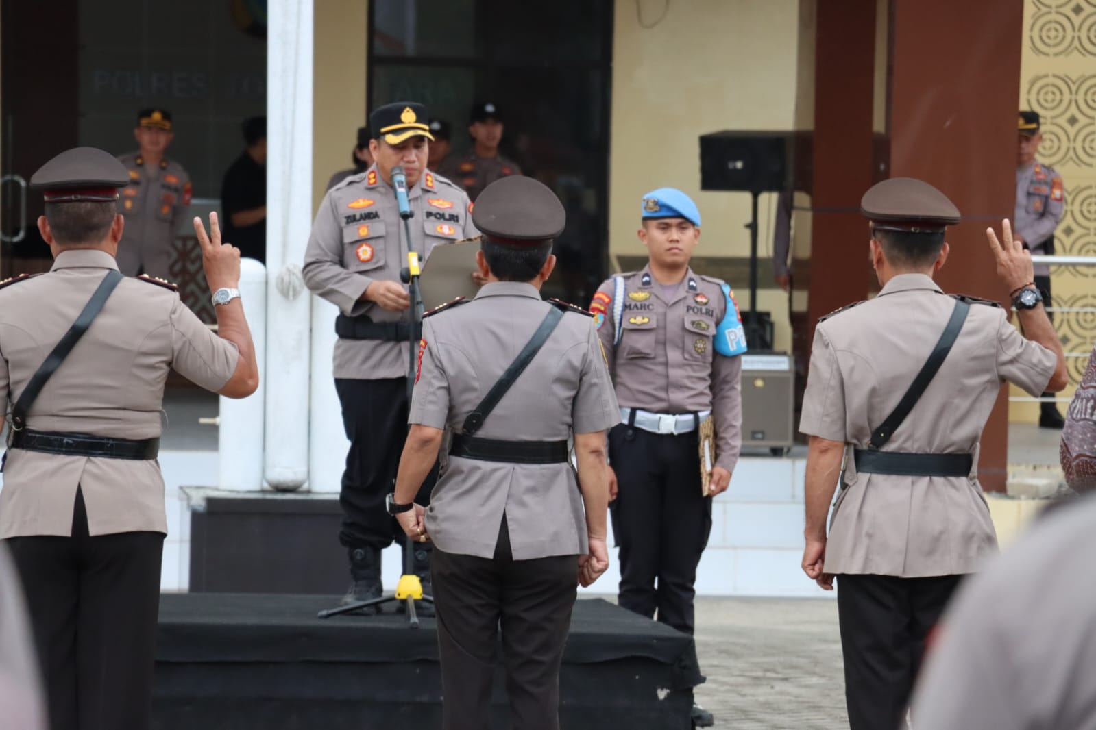 Kapolres Toraja Utara AKBP Zulanda, S.I.K., M.Si memimpin langsung upacara serah terima jabatan dan Pelantikan Wakapolres serta sejumlah pejabat lainnya lingkup Polres Toraja Utara di Halaman Mapolres Toraja Utara, Minggu (24/03/2024) sore.
